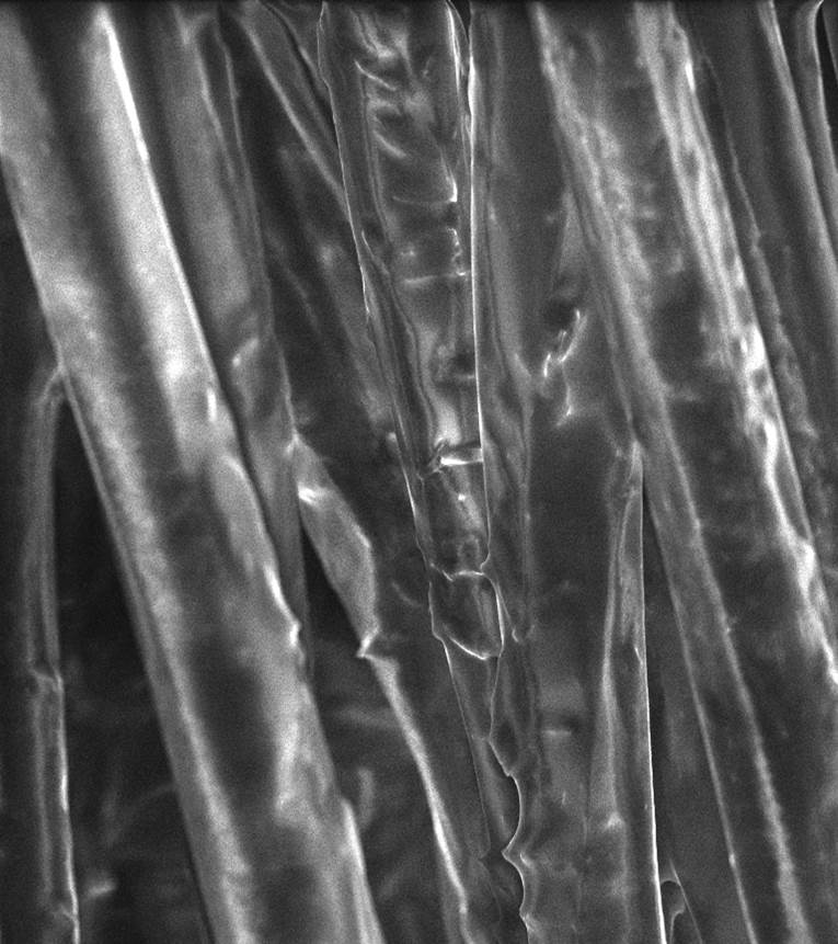 This is a monofilament thread, so it's a single strand as opposed to fibers that are bundled or braided together as we see in the traditional threads.